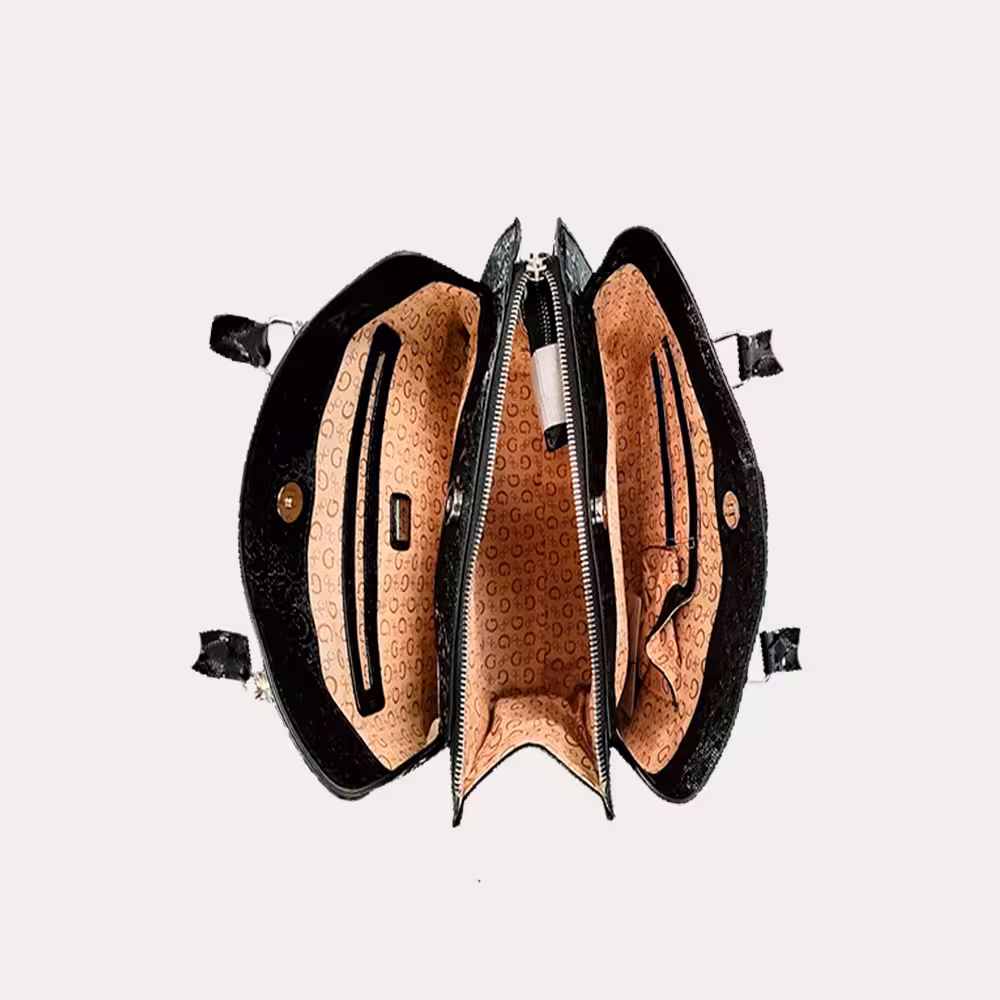 La Cartera Guess Cairn es para las amantes del estilo vintage, destaca por su silueta elegante y su textura suave de lona de poliéster recubiertas de pvc con herrajes plateado brillantes y logo de la marca en la parte frontal, interior organizado con forro y cierre superior con cremallera, fijación de solapa con botón. Cuenta con una correa ajustable de hombro, que le aporta un aire moderno y sofisticado. Su tamaño compacto lo convierte en el accesorio perfecto para llevar lo esencial con estilo. El discreto logotipo metálico en el frente resalta la identidad de la marca con sutileza.